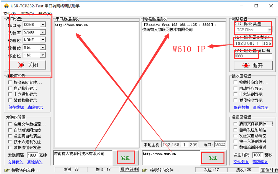 (1)第一種結(jié)果測試方法:打開有人串口轉(zhuǎn)網(wǎng)絡(luò)調(diào)試助手,參數(shù)配置如圖