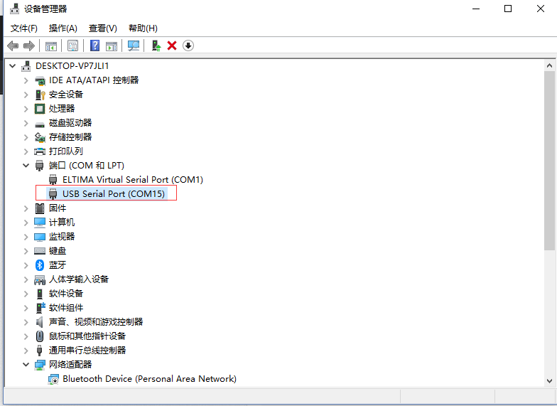 其中串口號可以在電腦的“設(shè)備管理器”中查看,見下圖;