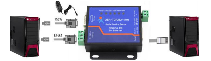 USR-TCP232-410S *2、標(biāo)準(zhǔn)的電源適配器*2、USB轉(zhuǎn)232串口線*2、測(cè)試軟件USR-TCP232-Test-V1.3、設(shè)置軟件