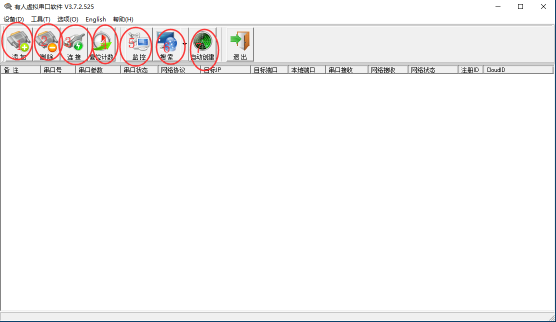 2. 刪除按鈕:將已建的虛擬串口刪除掉(選中相應(yīng)的串口點(diǎn)擊刪除)