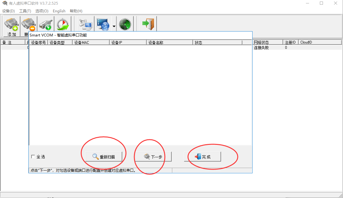 7. 自動(dòng)創(chuàng)建:他可以搜索到與電腦在同一個(gè)局域網(wǎng)內(nèi)的設(shè)備,然后自動(dòng)的為這個(gè)設(shè)備創(chuàng)建一個(gè)虛擬串口。