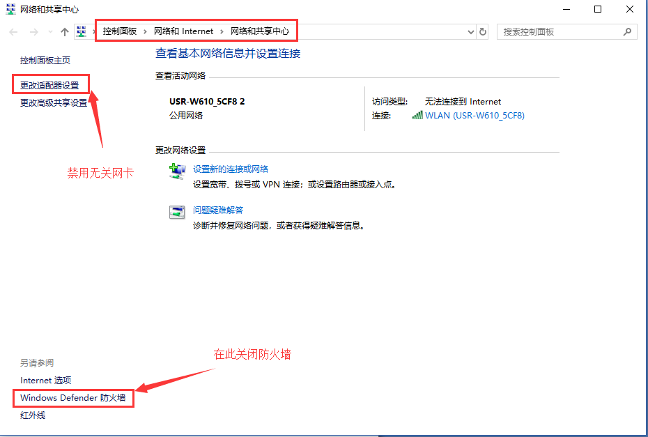 注意:在開(kāi)始測(cè)試之前,一定要把電腦上的防火墻關(guān)閉,退出殺毒軟件;在適配器設(shè)置中禁用本地網(wǎng)卡、VPN、虛擬機(jī)以及其他的網(wǎng)絡(luò)設(shè)備。