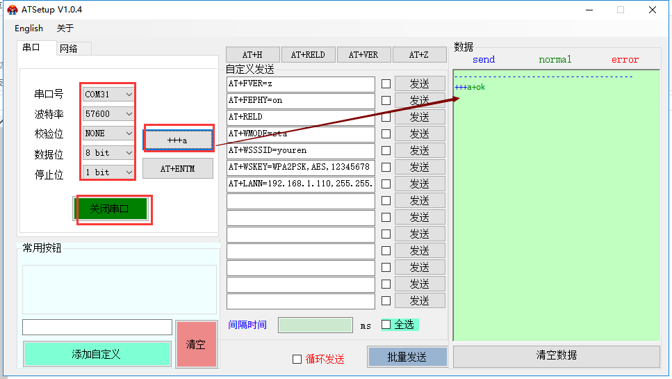 1、用usb轉(zhuǎn)232串口線(xiàn)把w610接到電腦的串口上,選擇正確的串口參數(shù),發(fā)送+++a,進(jìn)入配置狀態(tài)