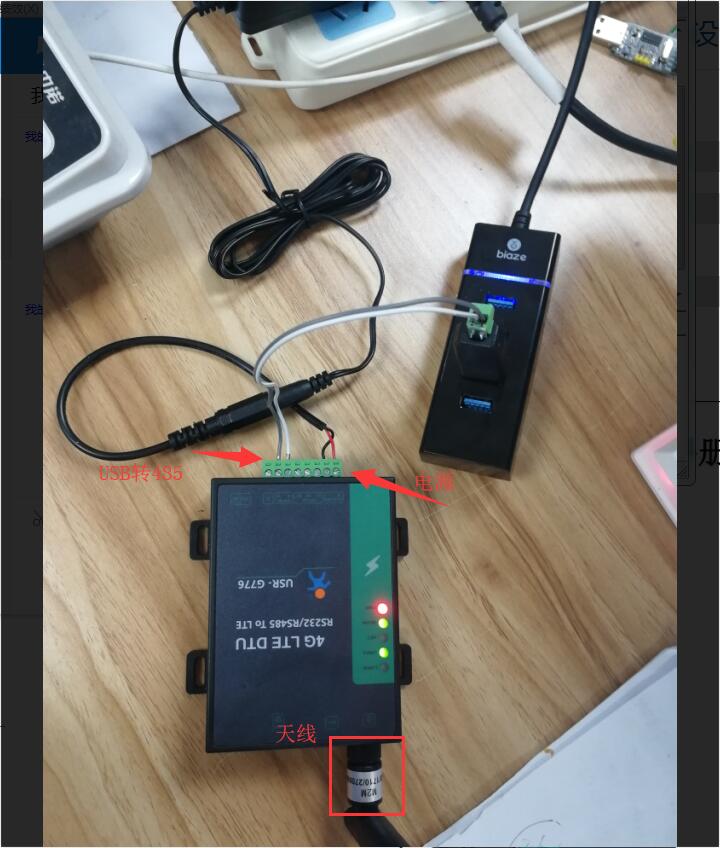 (1) 硬件連接:裝上sim卡,接上天線,G776的串口通過UAB轉(zhuǎn)RS232/485接到PC上,用我司提供的適配器供電。帶白條的那根線是正極,帶字母的那根線是負(fù)極。注意G776的RS232和RS485不能同時發(fā)送數(shù)據(jù),設(shè)置的時候只接一個串口就可以了