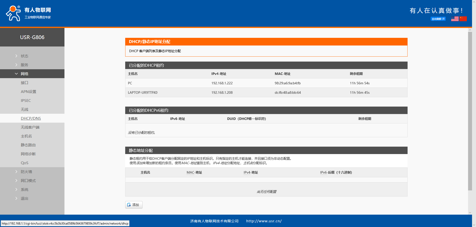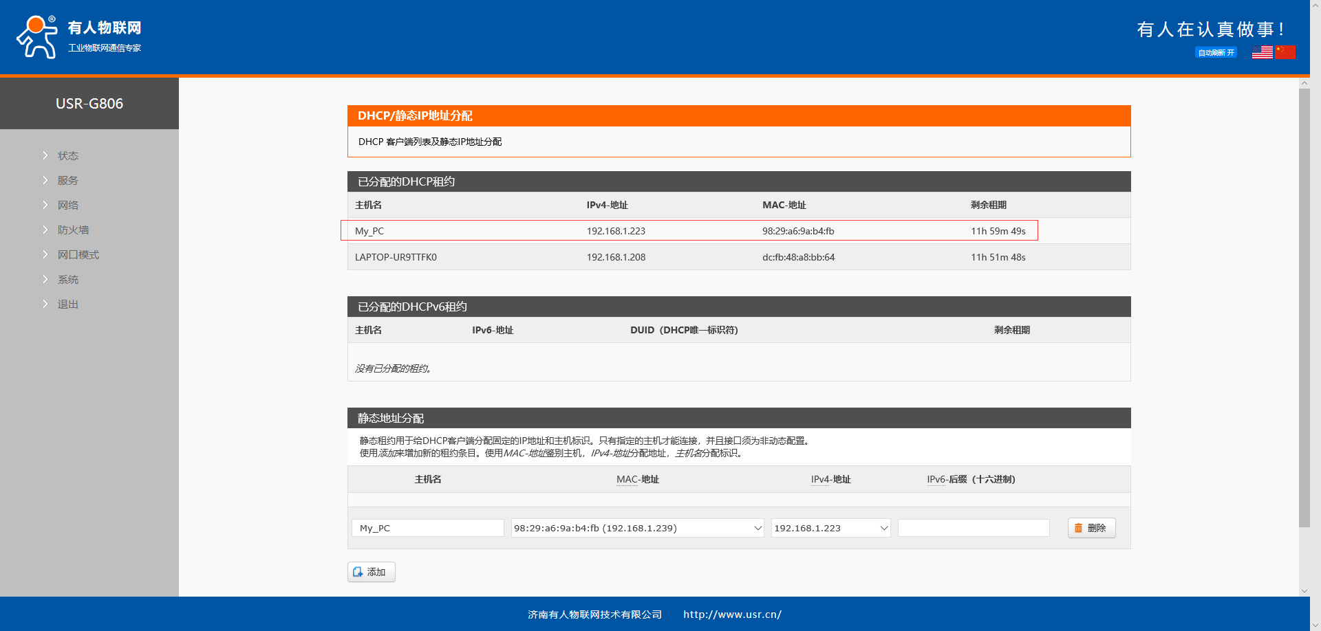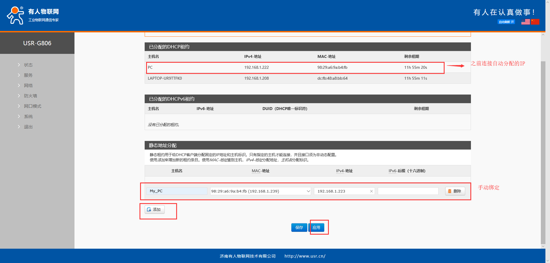 注意:若不知道設(shè)備MAC,且之前設(shè)備是DHCP接入G806,可以在該界面上已分配的DHCP租約看到設(shè)備的接入信息。