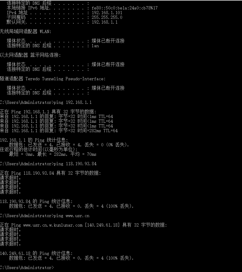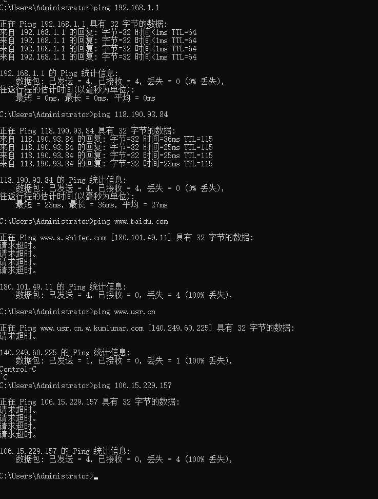 除了規(guī)則允許的192.168.1.1和118.190.93.84以外,無法ping通