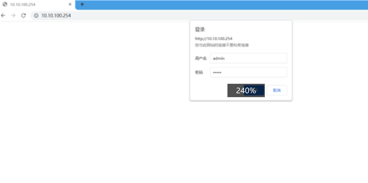 b. 打開瀏覽器,在地址欄輸入 http://10.10.100.254 回車,輸入用戶名:admin 密碼:admin。