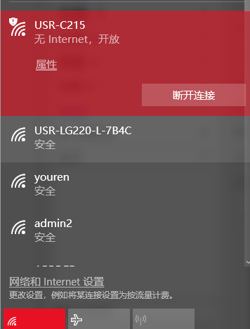 a. 將模塊A焊接到測試底板上,測試板串口連接電腦串口,電腦連接WiFi。在電腦無線搜索欄,搜索USR-C216,連接。