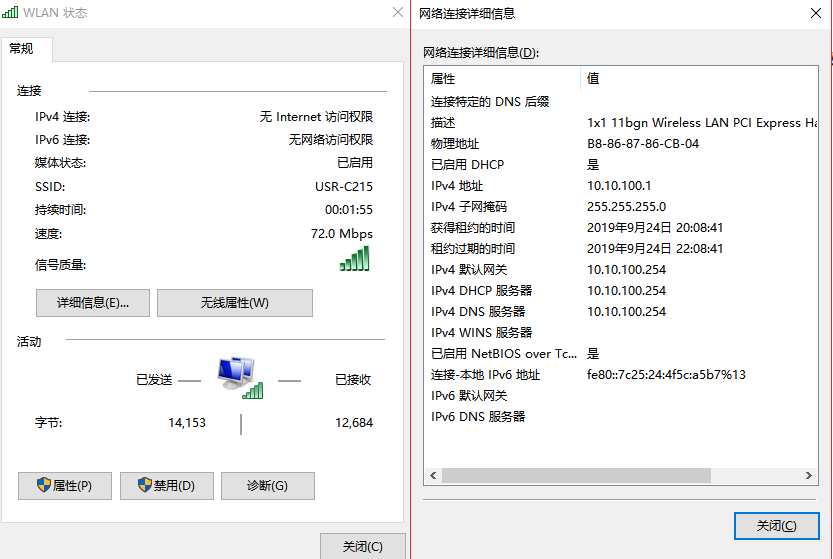 (2) 連接成功后或者電腦獲取到IP:10.10.100.1