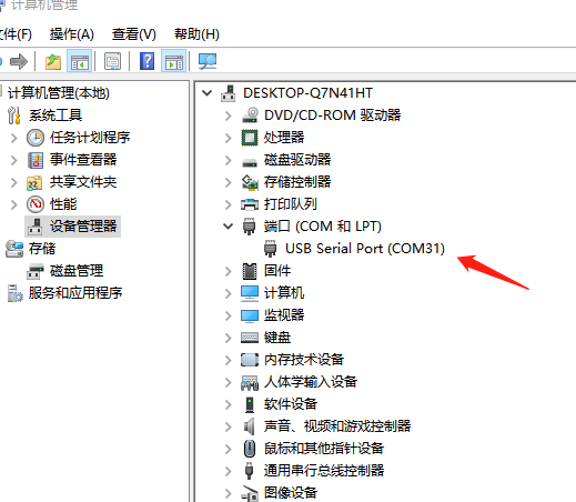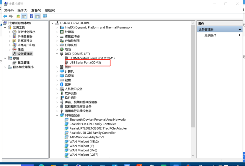 4、在電腦的設備管理器中,查看模塊在電腦上生成的端口com3
