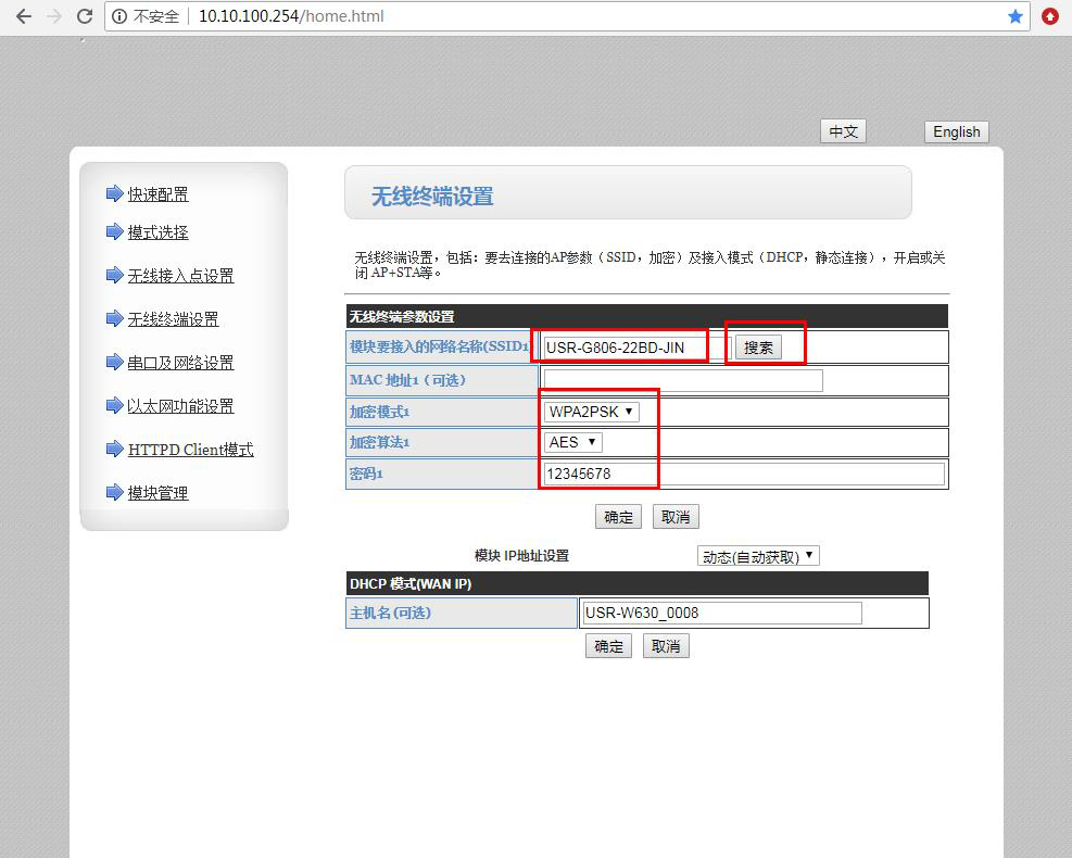 USR-W610用AT指令設(shè)置STA模式連接路由器的方法: