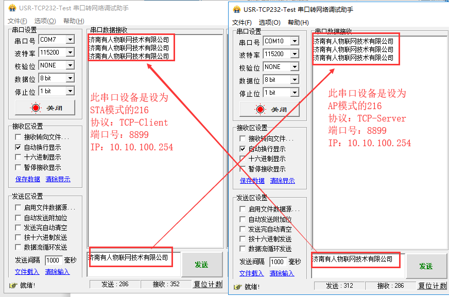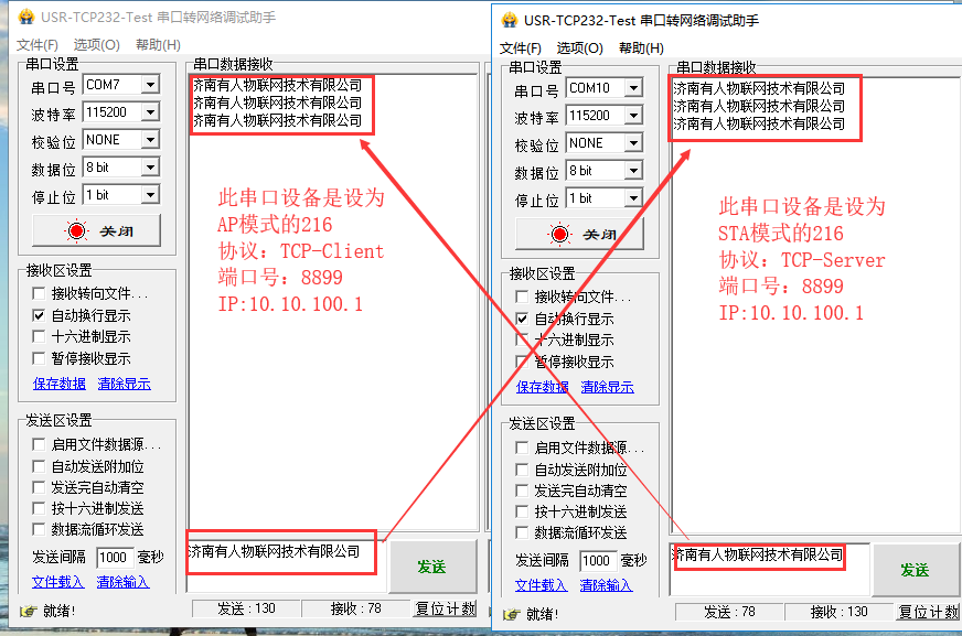 準備工作:兩個WIFI模塊C216供電,加裝天線,串口線分別直連電腦