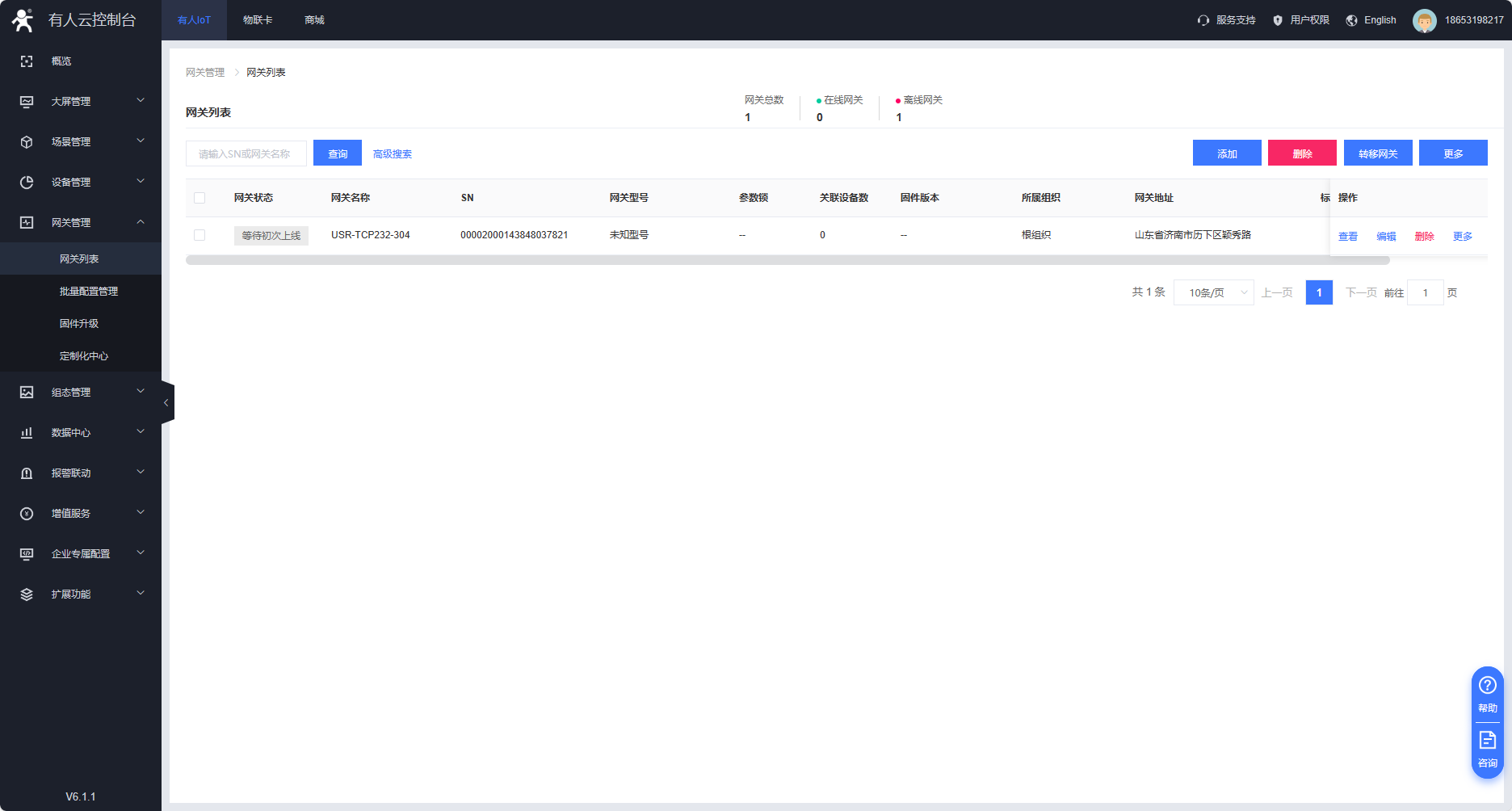 云平臺添加設(shè)備,在網(wǎng)關(guān)管理---網(wǎng)關(guān)列表--添加網(wǎng)關(guān),點擊SN不支持,系統(tǒng)自動生成,不需要自己設(shè)置,通訊密碼可以自定義8位密碼.(建議使用系統(tǒng)自動生成的通訊密碼)