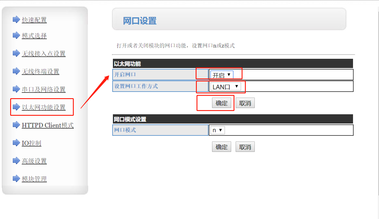 一、測試模塊的LAN口功能。