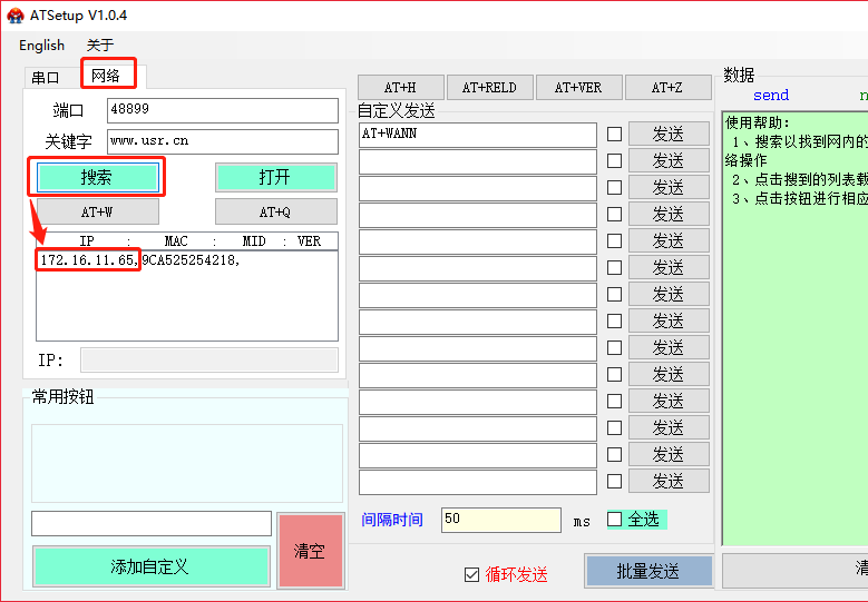 2、串口AT指令模式查詢模塊WAN口IP。搜索軟件下載鏈接:http://m.lifj.com.cn/Download/91.html
