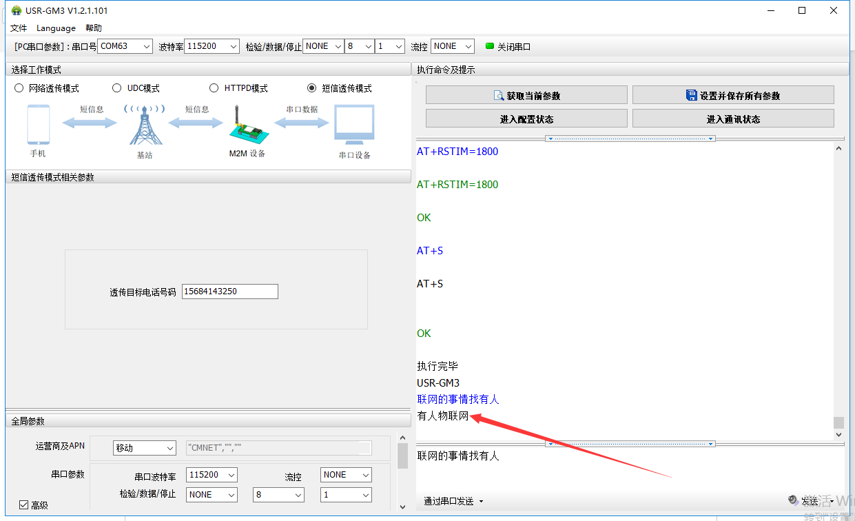 1. 短信透傳只適用與移動(dòng)聯(lián)通的普通sim卡使用,物聯(lián)卡無法使用該功能。
