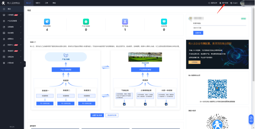 6、使用子賬號通行證登陸后可以在有人云控制臺看到主賬號分配的權(quán)限。