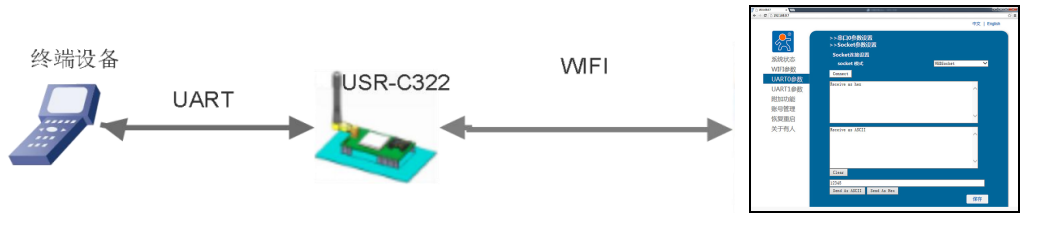 USR-C322支持WEBsocket透傳,模塊作為webserver,端口8000。從串口到網(wǎng)頁只支持Websocket ASCII碼透傳。最多支持4個(gè)client連接,當(dāng)連接數(shù)超過4個(gè)后,模塊自動(dòng)關(guān)閉最先建立的socket連接。網(wǎng)頁源碼是公開的,用戶可以自己修改網(wǎng)頁實(shí)現(xiàn)自己的特殊網(wǎng)頁需要,升級自定義網(wǎng)頁請參考軟件設(shè)計(jì)手冊網(wǎng)頁自定義功能描述。模塊只有UART0串口支持此模式。