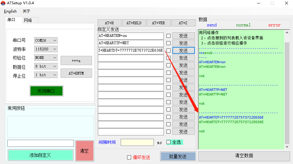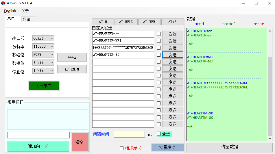 d. 設(shè)置心跳包數(shù)據(jù),例如,將數(shù)據(jù)設(shè)置為字符串 m.lifj.com.cn, 需要先轉(zhuǎn)換為十六機(jī)制的字符串為7777772E7573722E636E。