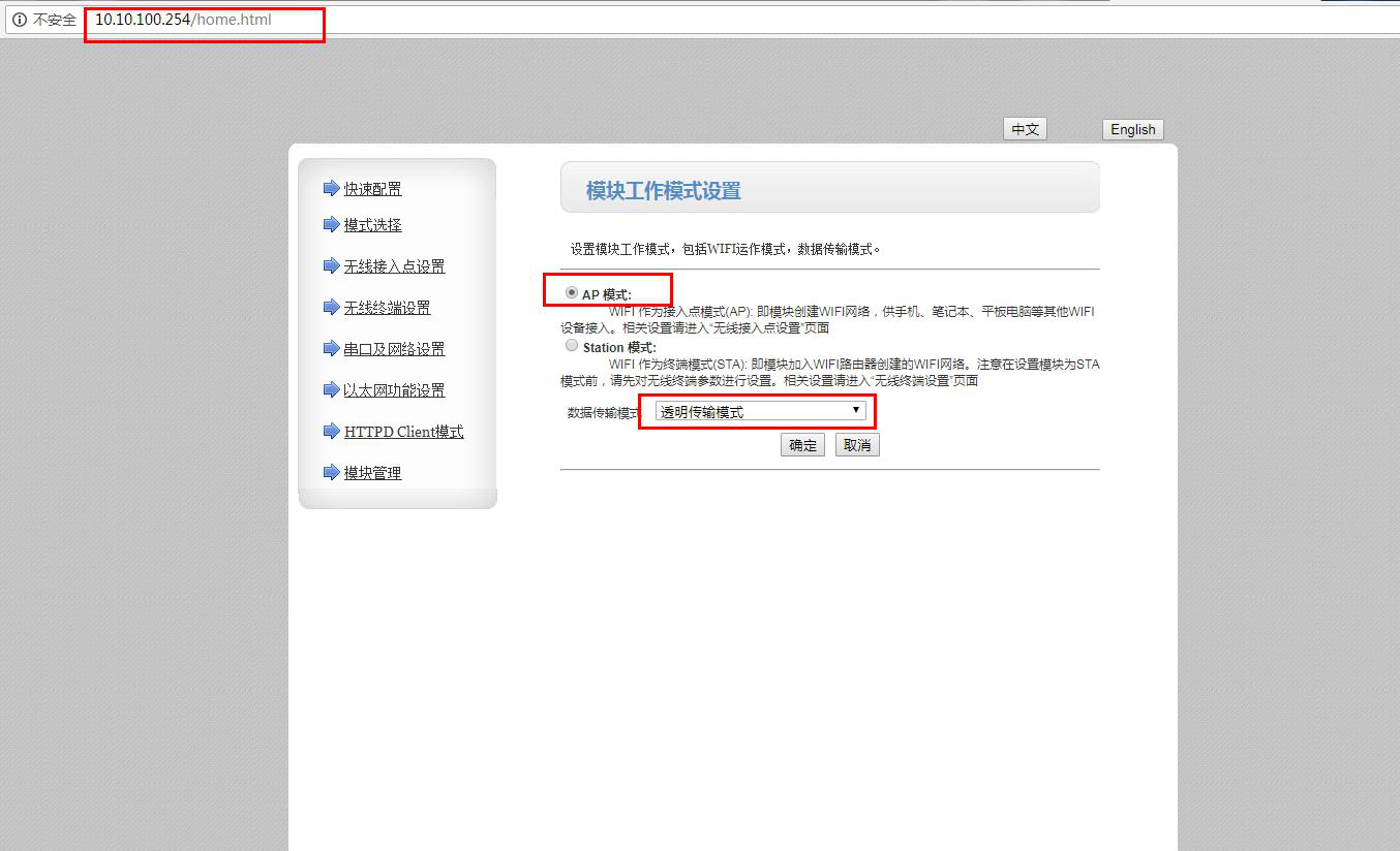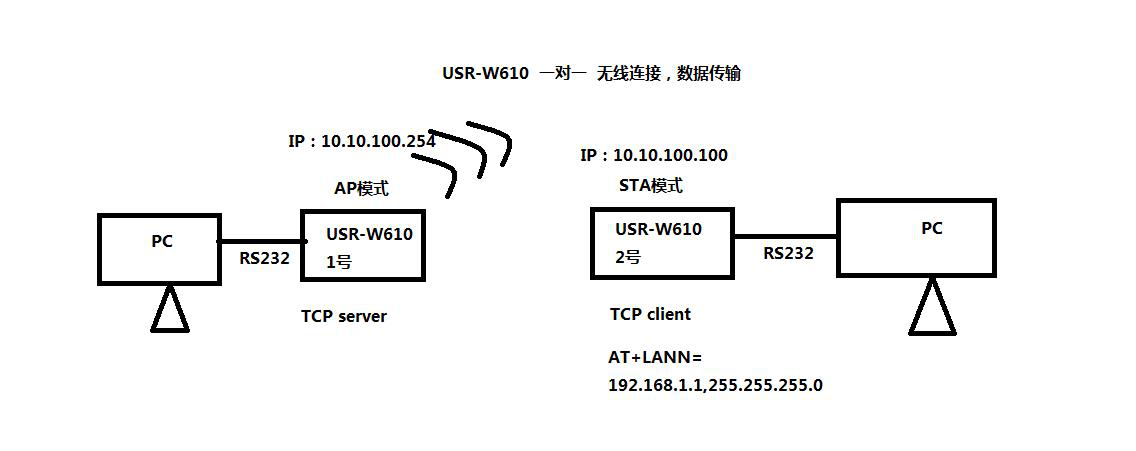 1號(hào)USR-W610設(shè)置AP模式,工作模式設(shè)置TCP server。