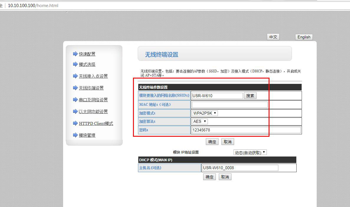 2、2號(hào)USR-W610 STA模式參數(shù)設(shè)置: