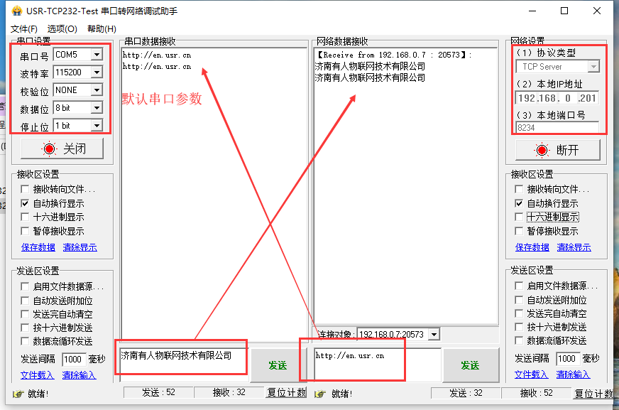 本測試是模塊默認(rèn)設(shè)置連接電腦測試通信