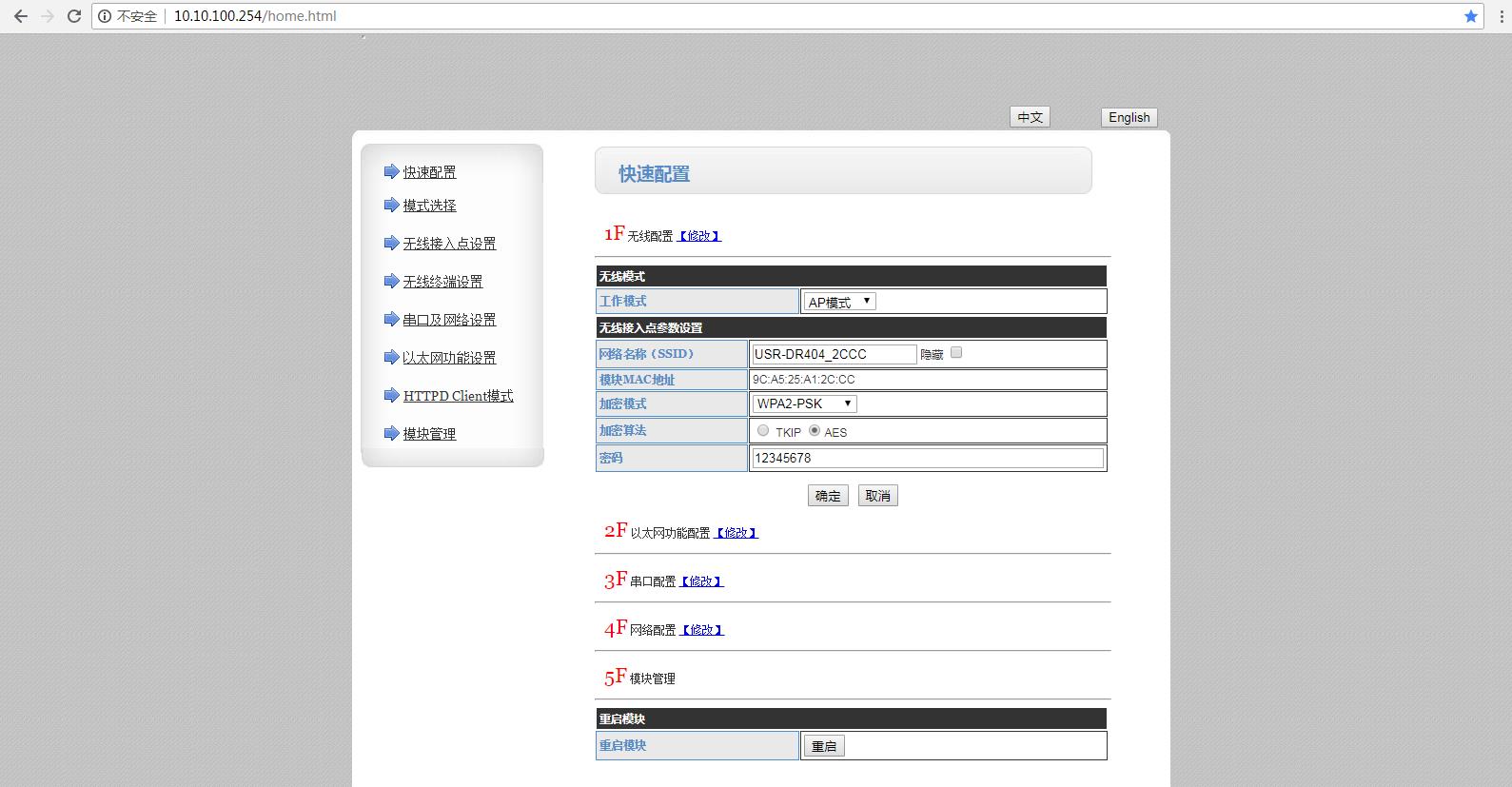 USR-DR404默認IP是10.10.100.254,用這個IP,在瀏覽器輸入,進入USR-DR404的內(nèi)置網(wǎng)頁,可以對DR404進行參數(shù)查看和參數(shù)配置。登錄用戶名和密碼都是admin。