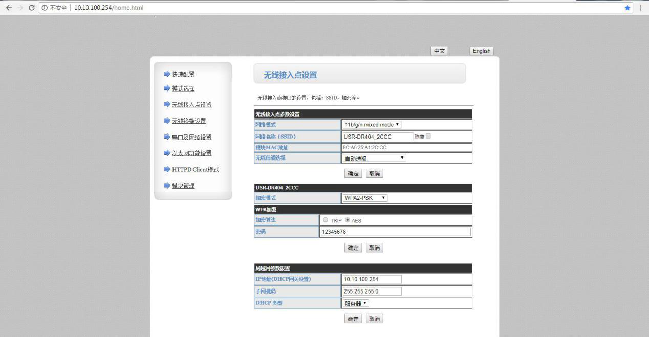USR-DR404默認(rèn)IP是10.10.100.254,用這個(gè)IP,在瀏覽器輸入,進(jìn)入U(xiǎn)SR-DR404的內(nèi)置網(wǎng)頁,可以對(duì)DR404進(jìn)行參數(shù)查看和參數(shù)配置。登錄用戶名和密碼都是admin。