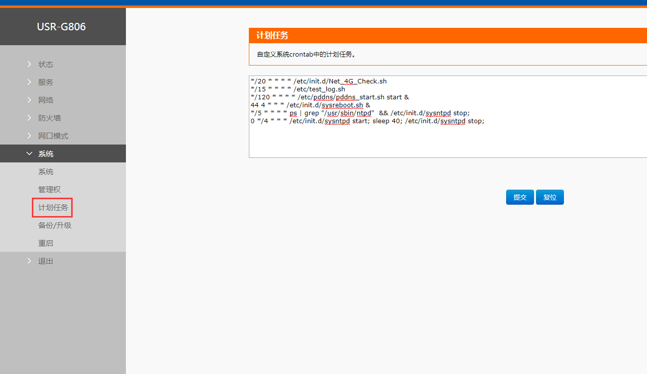 登錄路由器的內(nèi)置網(wǎng)頁,在系統(tǒng)-->計(jì)劃任務(wù)界面可以看到路由器出廠默認(rèn)的幾條計(jì)劃任務(wù)。