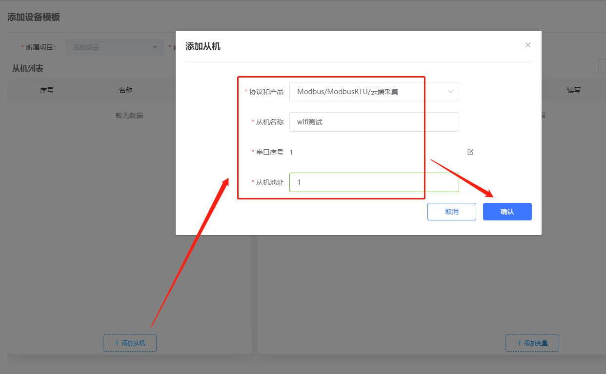 7、模板更改名稱,選擇modbus rtu協(xié)議,點(diǎn)擊保存