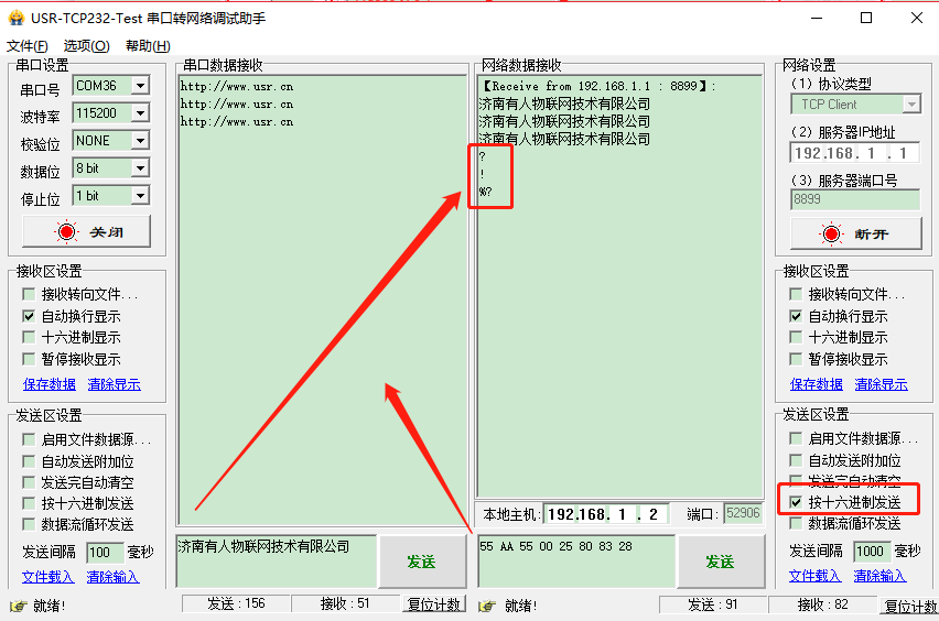 (3) 打開USR-TCP232-TEST軟件測(cè)試