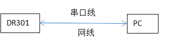 2、將301(USR-DR301,簡(jiǎn)稱 301)的串口通過(guò)串口線(或USB 轉(zhuǎn)串口線)與PC相連接,通過(guò)網(wǎng)線將 301 的網(wǎng)口 PC 的網(wǎng)口相連接,檢測(cè)硬件連接無(wú)錯(cuò)誤后,接入我們配送的電源適配器,給 301 供電。