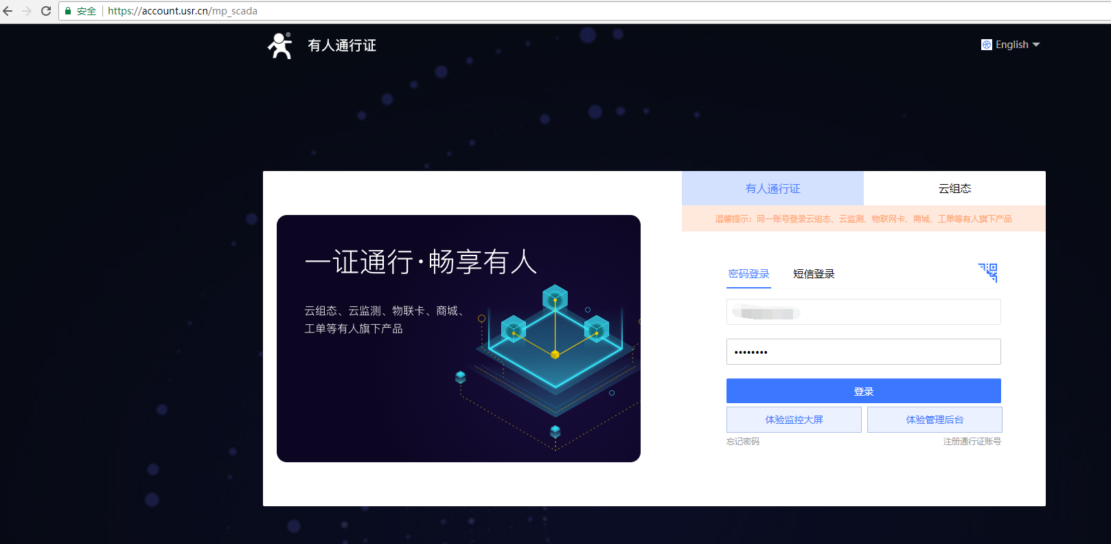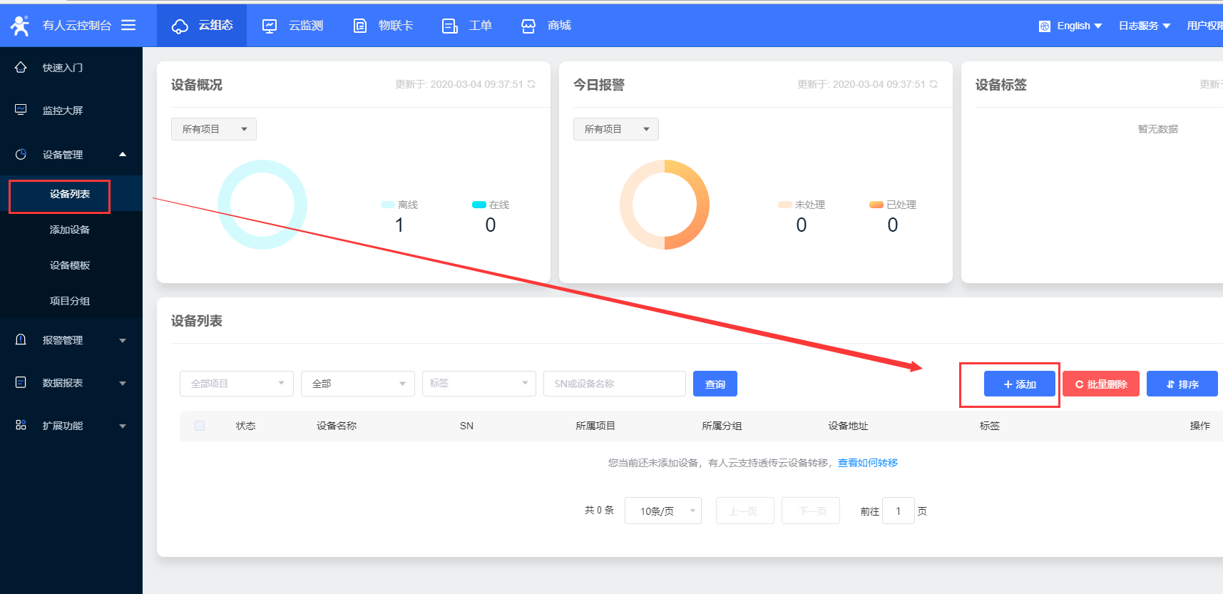 3.注冊(cè)有人云通行證,通過通行證進(jìn)入有人云,在設(shè)備管理中通過ID方式添加設(shè)備,設(shè)備模板選擇modbusrtu。
