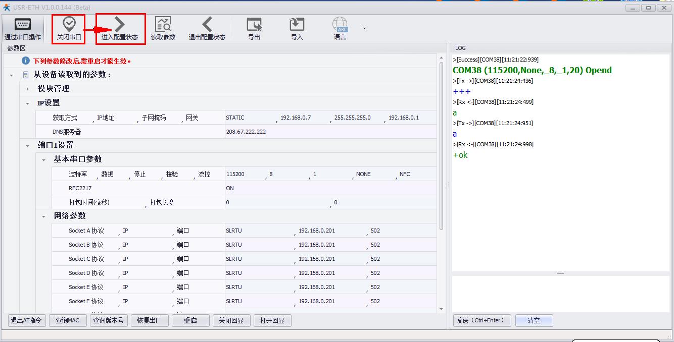 二、靜態(tài)IP時USR-M511做MODBUS RTU從機: