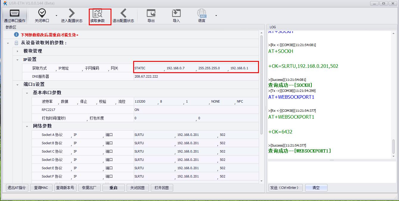 用串口設置軟件搜索USR-M511的IP。確認是192.168.0.7