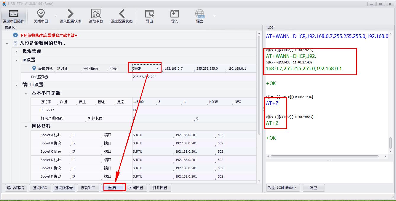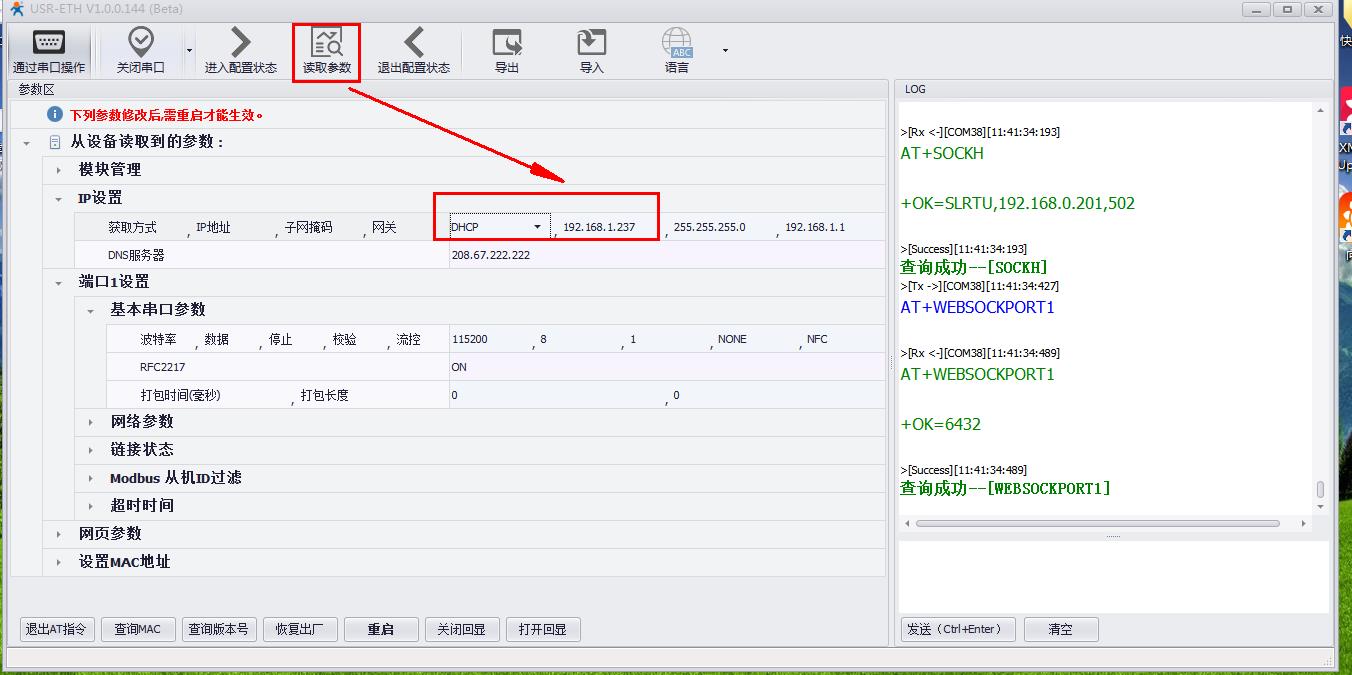 USR-M511網口用網線接路由器,電腦也連接同一個路由器。USR-M511用串口設置軟件設置DHCP,動態(tài)獲取IP。