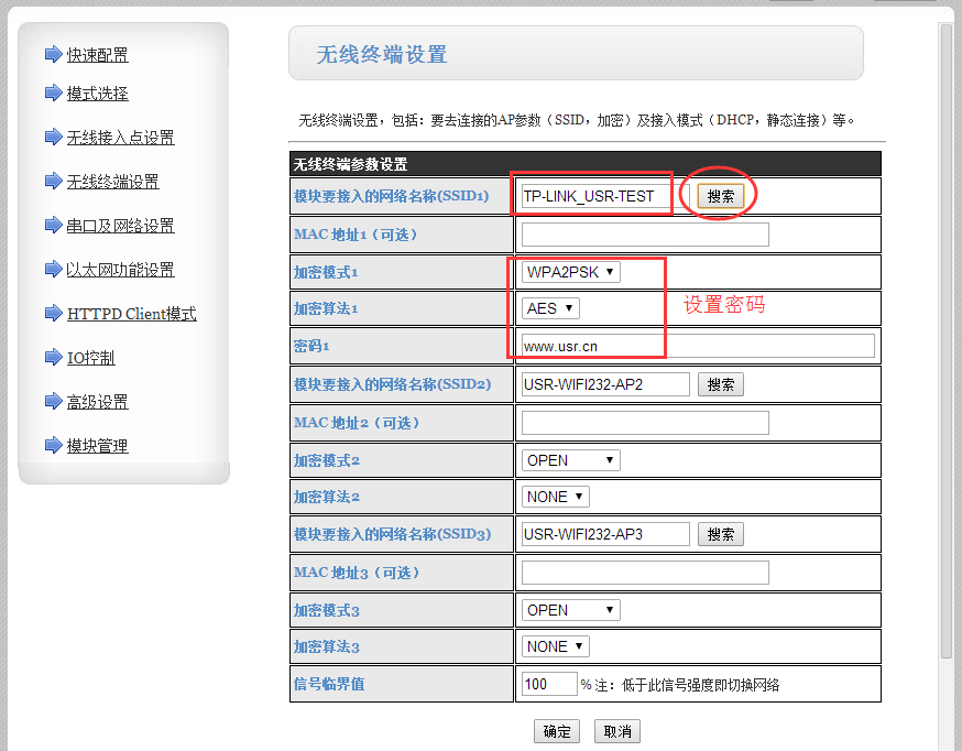 輸入WIFI模塊默認(rèn)的IP地址10.10.100.254進(jìn)入配置界面,快捷設(shè)置,設(shè)置為STA模式,然后搜索WiFi模塊要連接的路由器ssid,如果連接密碼。設(shè)置成功后在模塊管理內(nèi)重啟模塊。