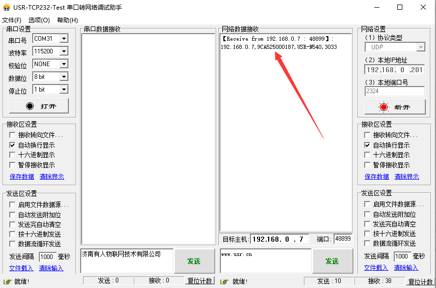 工業(yè)級(jí)四串口服務(wù)器USR-N540基本測(cè)試通信和使用方案http://m.lifj.com.cn/Faq/237.html