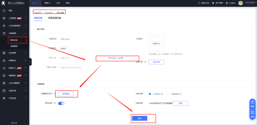 2.在有人云上添加設備選擇【SN不支持】添加,ID是系統(tǒng)自動生成的。