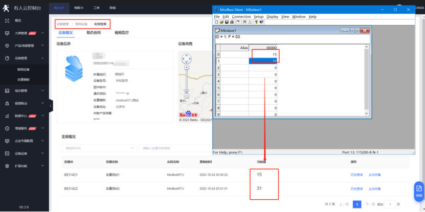 2.可以在聯(lián)網(wǎng)設備--數(shù)據(jù)查看,看到采集的從機數(shù)據(jù)。