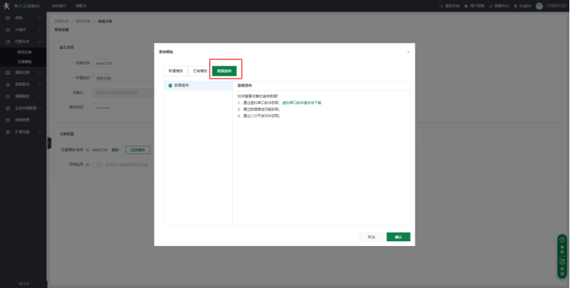 3>新建模板,選擇“數(shù)據(jù)透傳”
