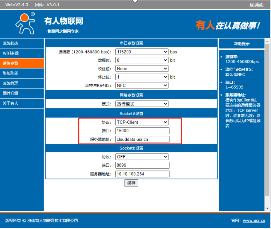 填寫地址clouddata.usr.cn,端口15000,點(diǎn)擊保存并選擇重啟。
