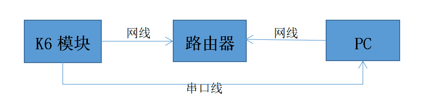 1.將 K6通過串口線(USB 轉(zhuǎn)RS232串口線)與計(jì)算機(jī)相連接,通過網(wǎng)線將 K6 的網(wǎng)口 與路由器相連接,PC也連接這個(gè)路由器,檢測(cè)硬件連接無錯(cuò)誤后,接入5V電源適配器,給K7供電。觀察K6網(wǎng)口指示燈狀態(tài)是否正常:綠色燈常亮,黃色燈閃爍。