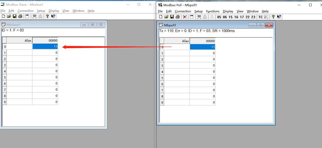 9、打開(kāi)測(cè)試軟件:modbusslave