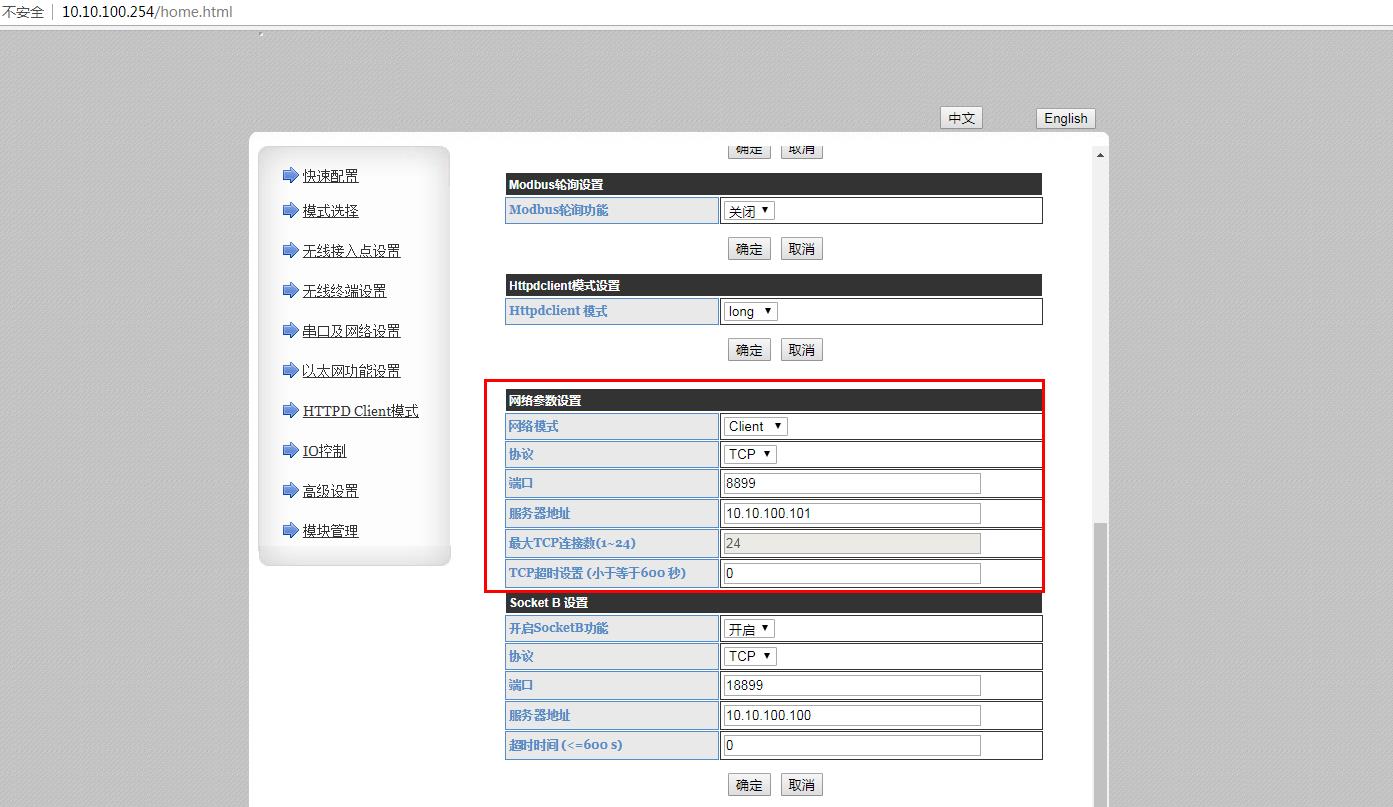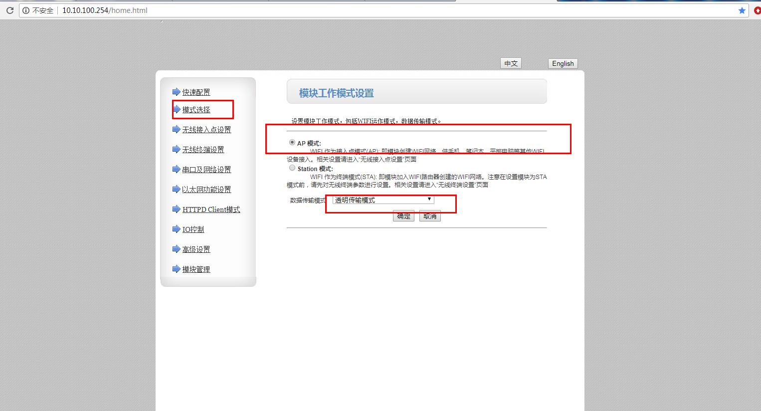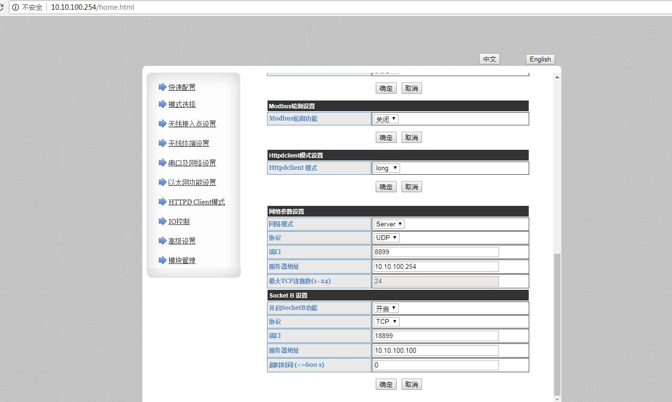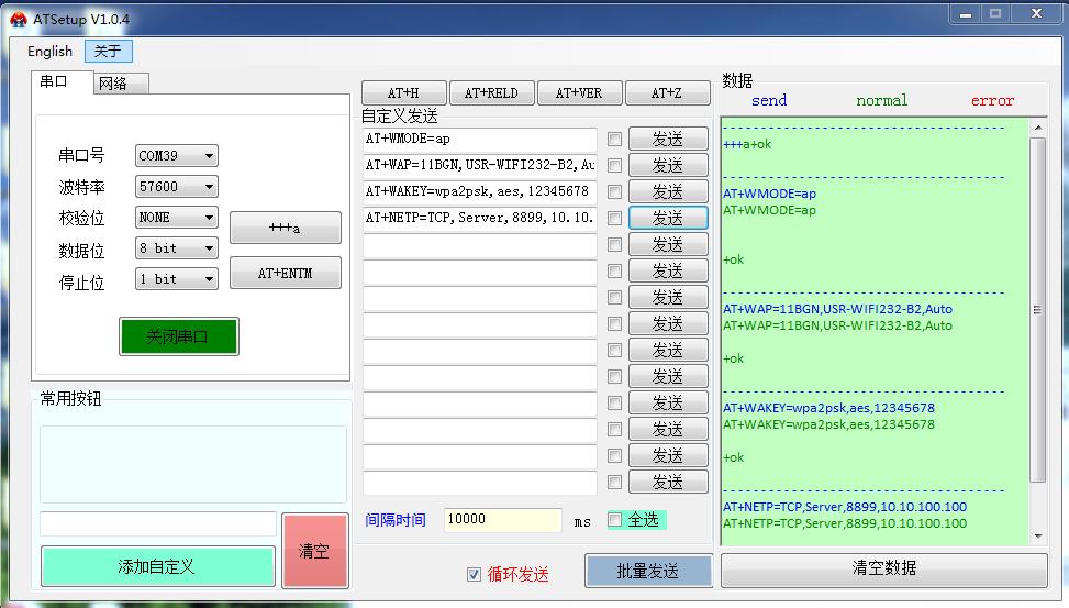用USR-WIFI232-B2的Ip 10.10.100.254 登錄USR-WIFI232-B2的網(wǎng)頁,然后修改W610的串口參數(shù)。測試4種工作模式下,串口和網(wǎng)絡(luò)的數(shù)據(jù)透傳。
