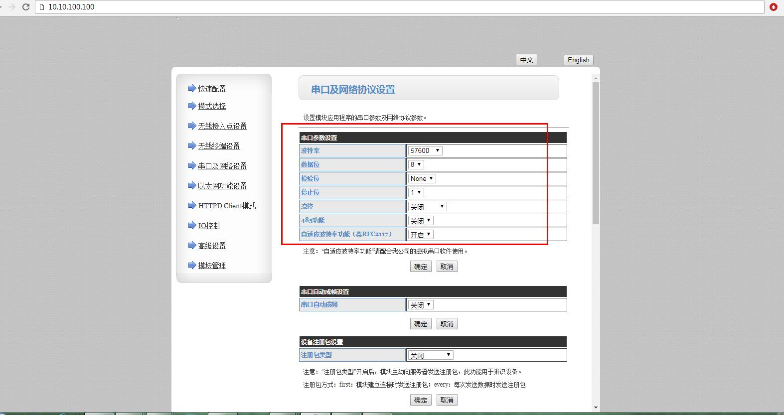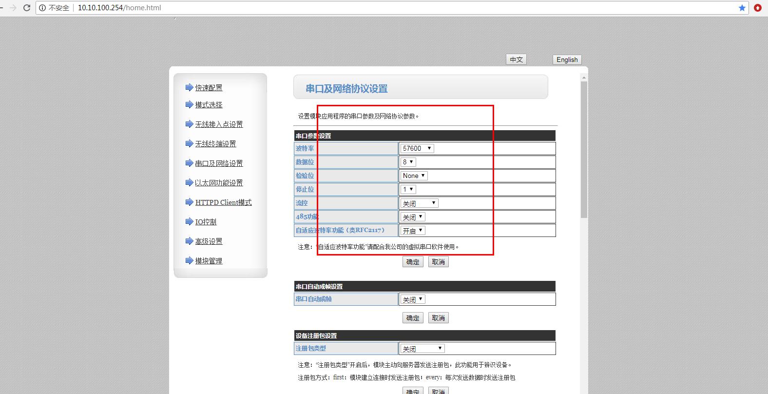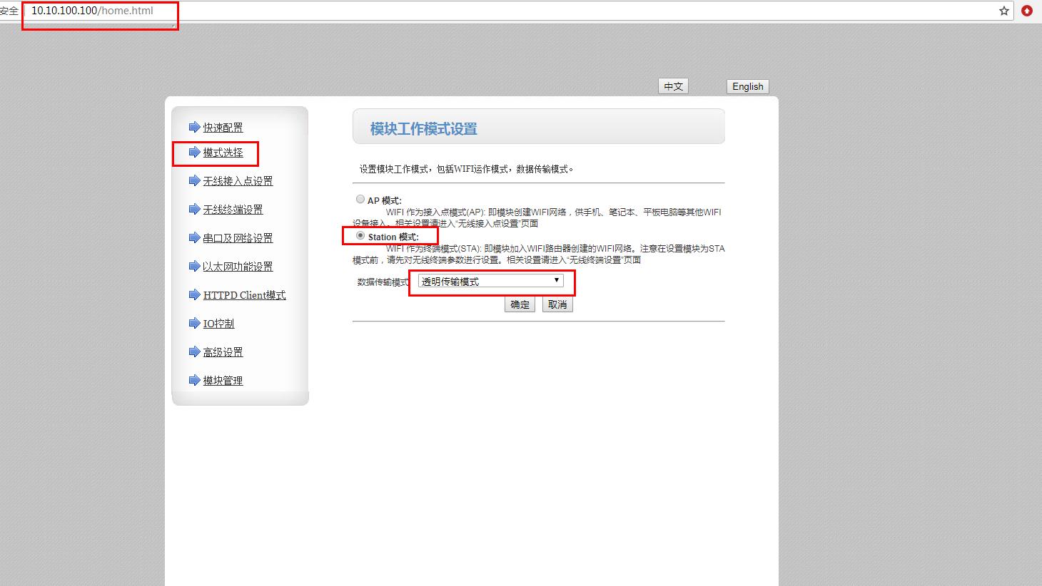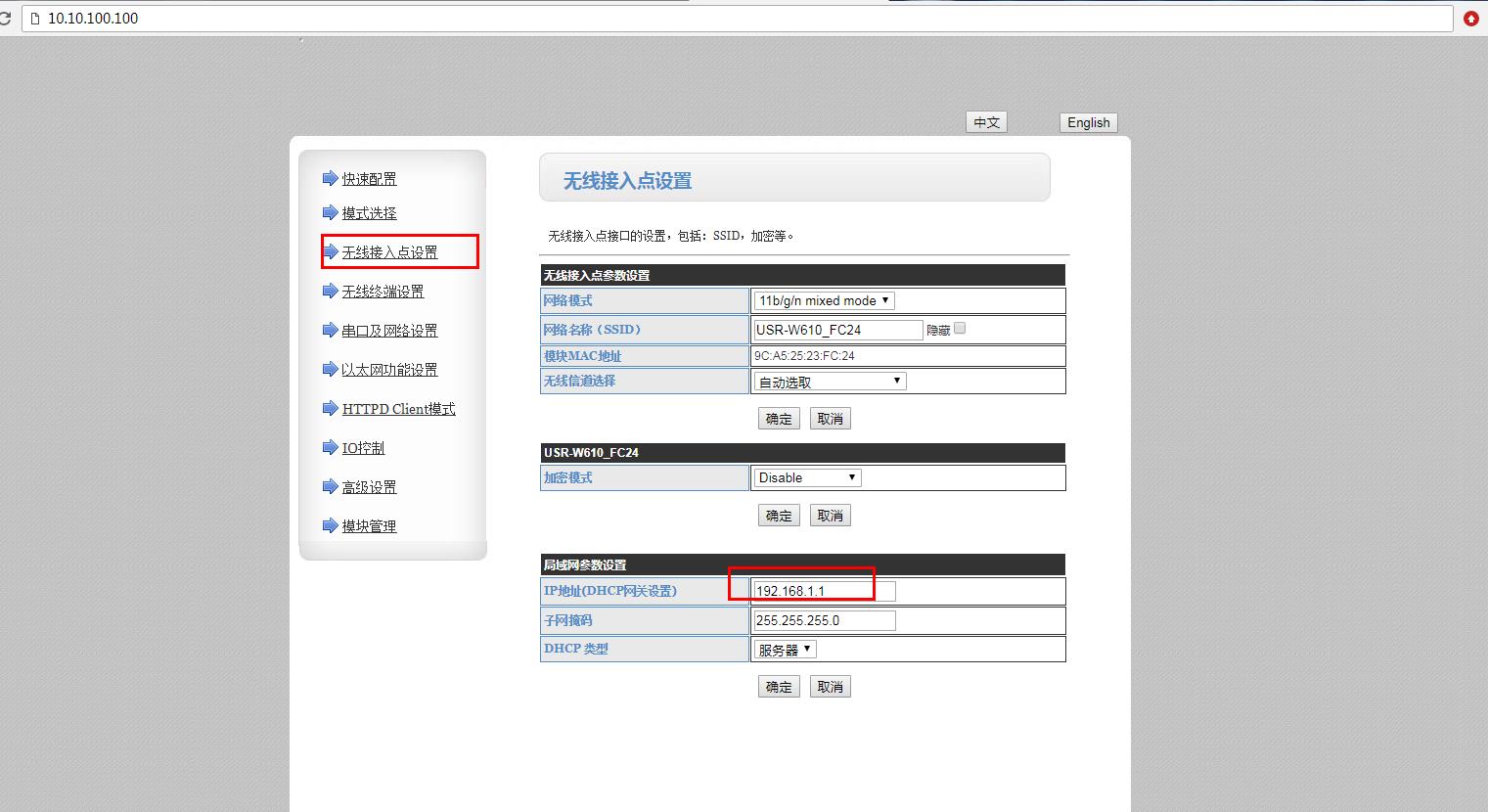 在網(wǎng)頁(yè)上將工作模式從Ap模式,保存參數(shù)。B2模塊 Ip默認(rèn)10.10.100.254。