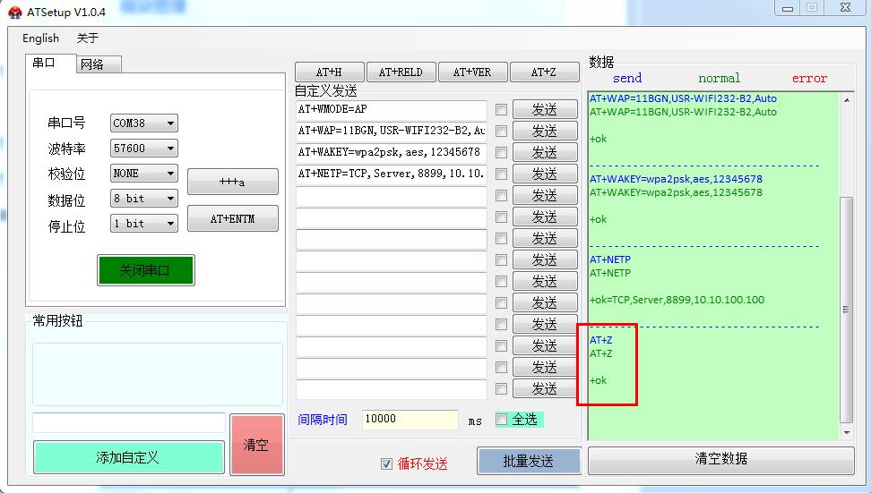(1)串口AT指令設(shè)置B2模塊做Ap模式參數(shù), 最后發(fā)送AT+Z保存
