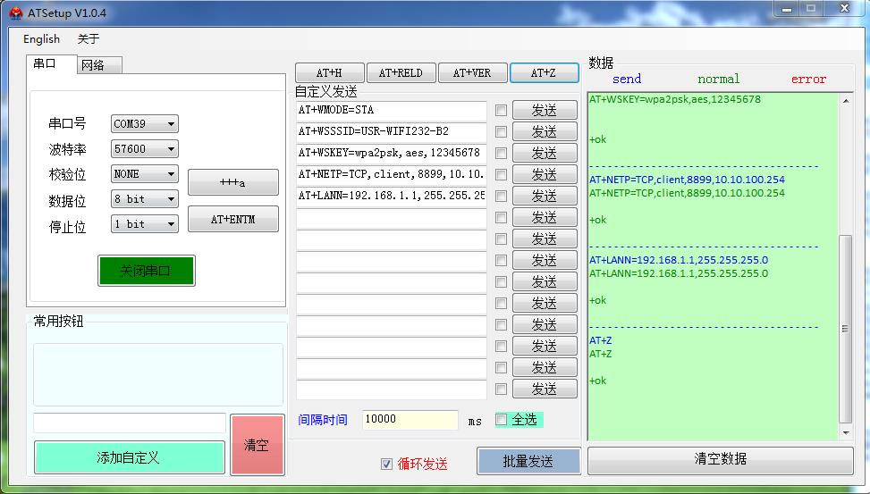 8、附:使用串口線(xiàn),串口軟件用串口AT指令配置B2模塊的方法