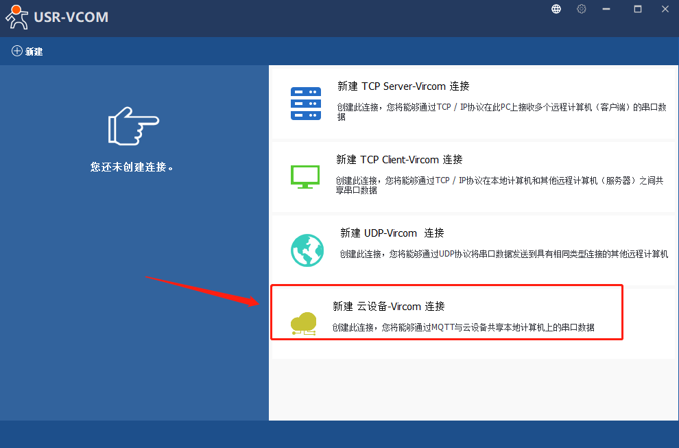 16、打開下載好的VCOM軟件,點擊 新建云設(shè)備。