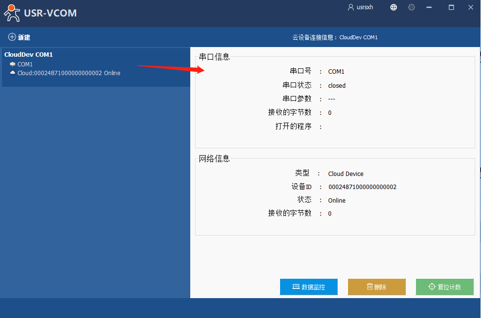 18、選擇一個沒有使用串口號,選擇云端剛才添加的設(shè)備,點新建,生成設(shè)備對應(yīng)的虛擬串口。